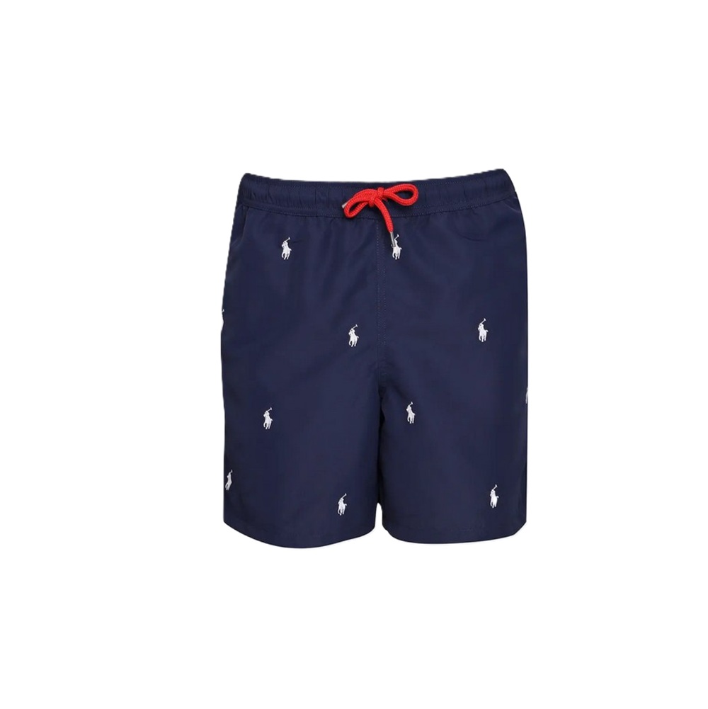 Boxer mare tinta unita con ricamo logo a contrasto all over, vita elasticizzata e tasche a filo