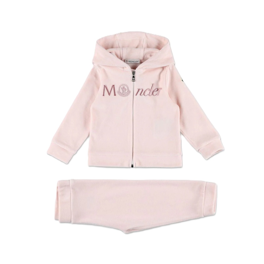 Completo tuta in ciniglia tinta unita composto da felpa con zip e cappuccio e ricamo logo e pantaloni con vita elasticizzata