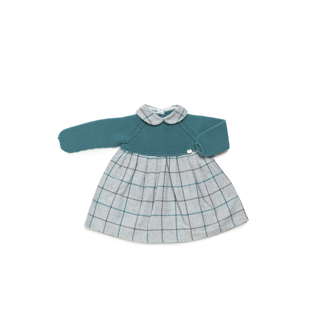 vestito composto dalla parte superiore tricot tinta unita e dettaglio colletto, parte inferiore a quadri