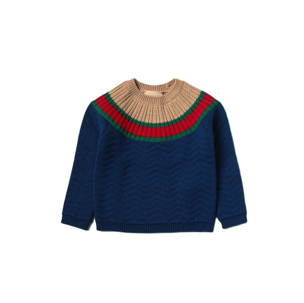 Pullover girocollo con dettagli a righe, orlo dritto.