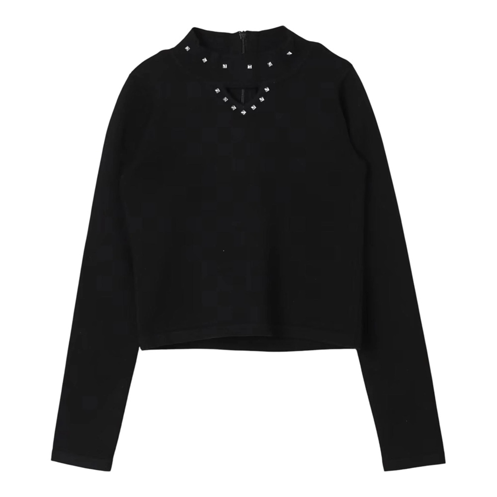Lupetto tinta unita con borchie e dettaglio cut cut, chiusura posteriore con zip
