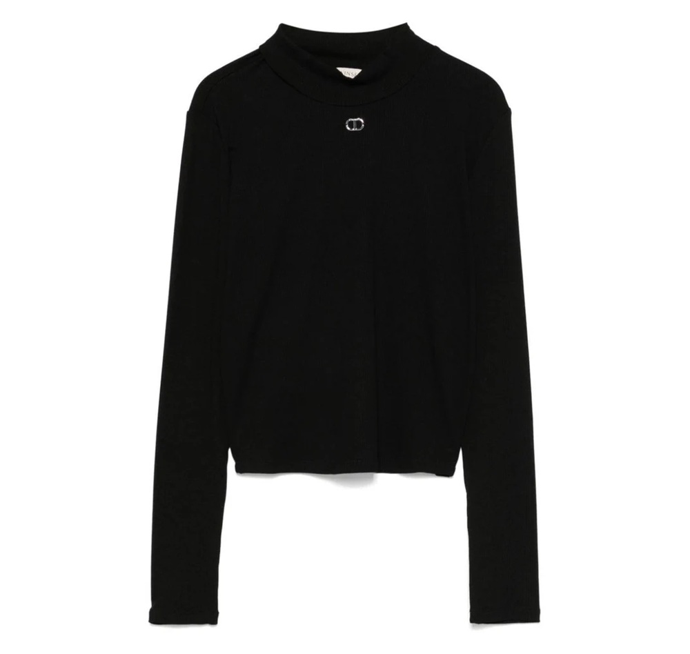Lupetto a coste tinta unita con logo in metallo anteriore