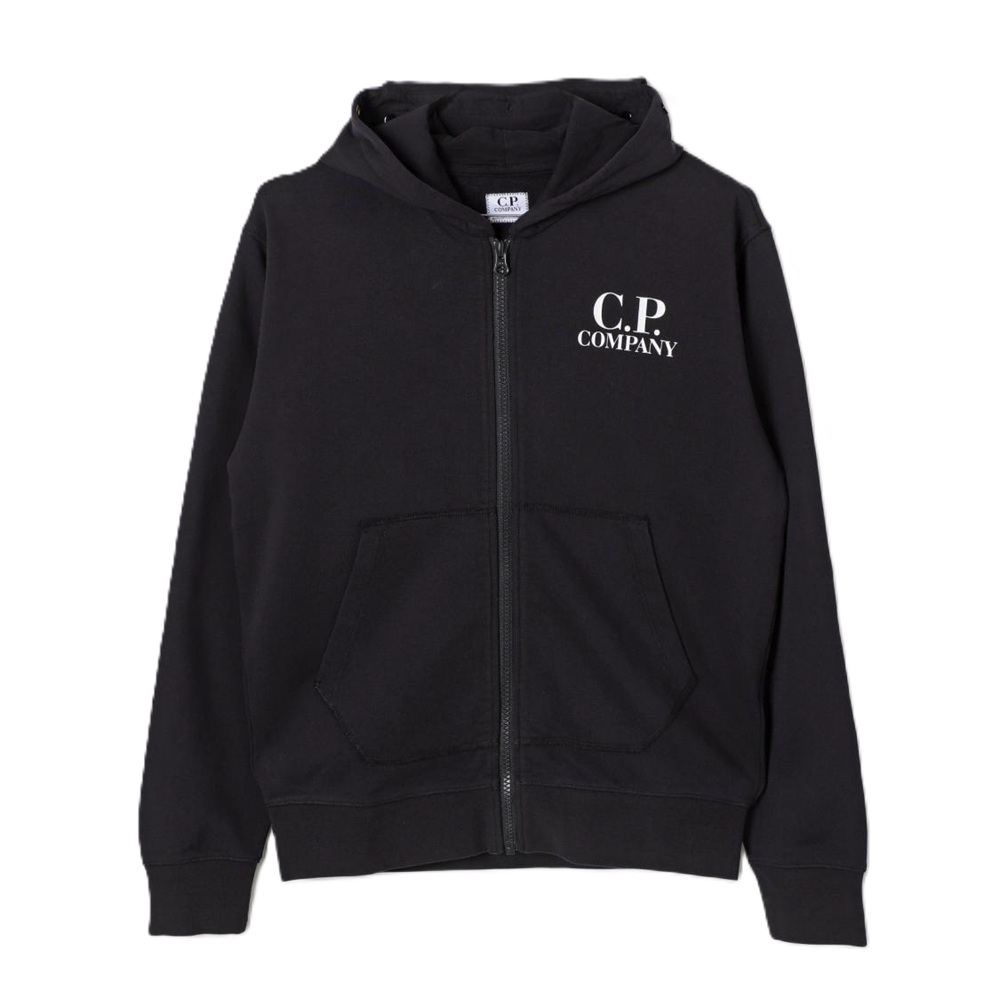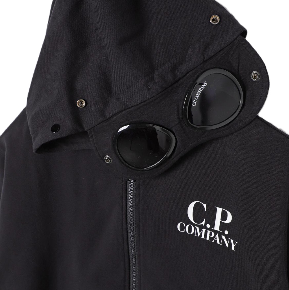 Felpa tinta unita con zip e cappuccio, dettaglio degli occhiali, stampa del logo sul petto, due tasche anteriori a marsupio