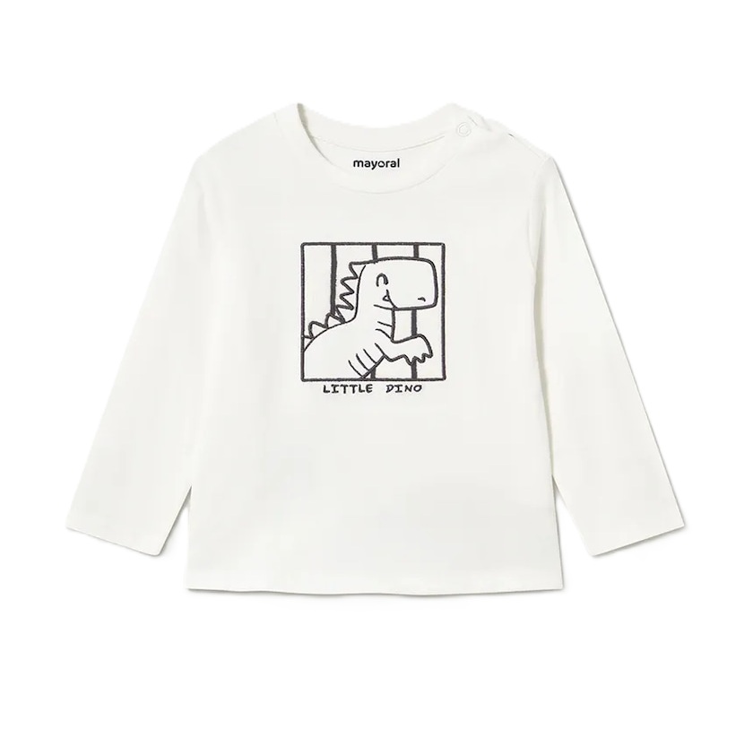 t-shirt a manica lunga in tinta unita con ricamo frontale dinosauro