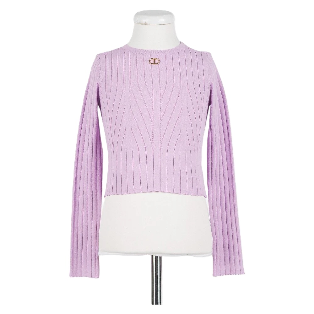 Maglia a coste tinta unita manica lunga con logo Oval-T in metallo anteriore