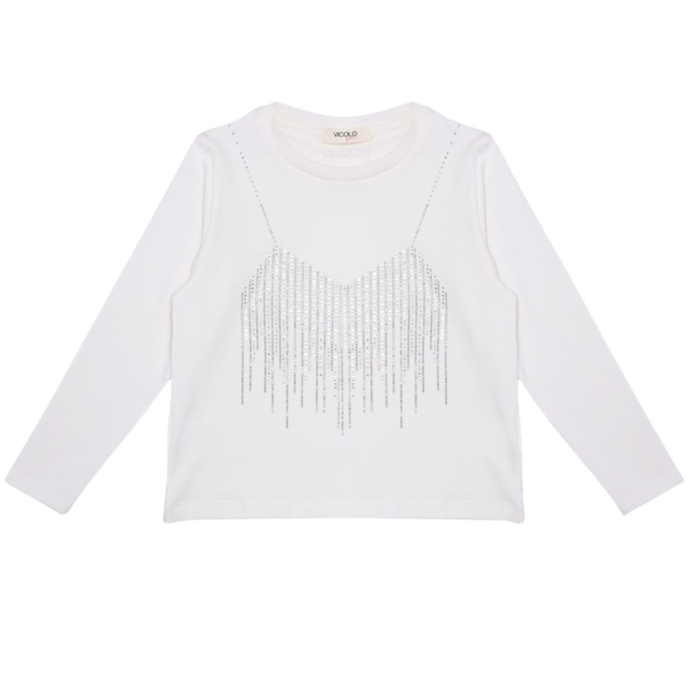 t-shirt a manica lunga in tinta unita con motivo strass frontale