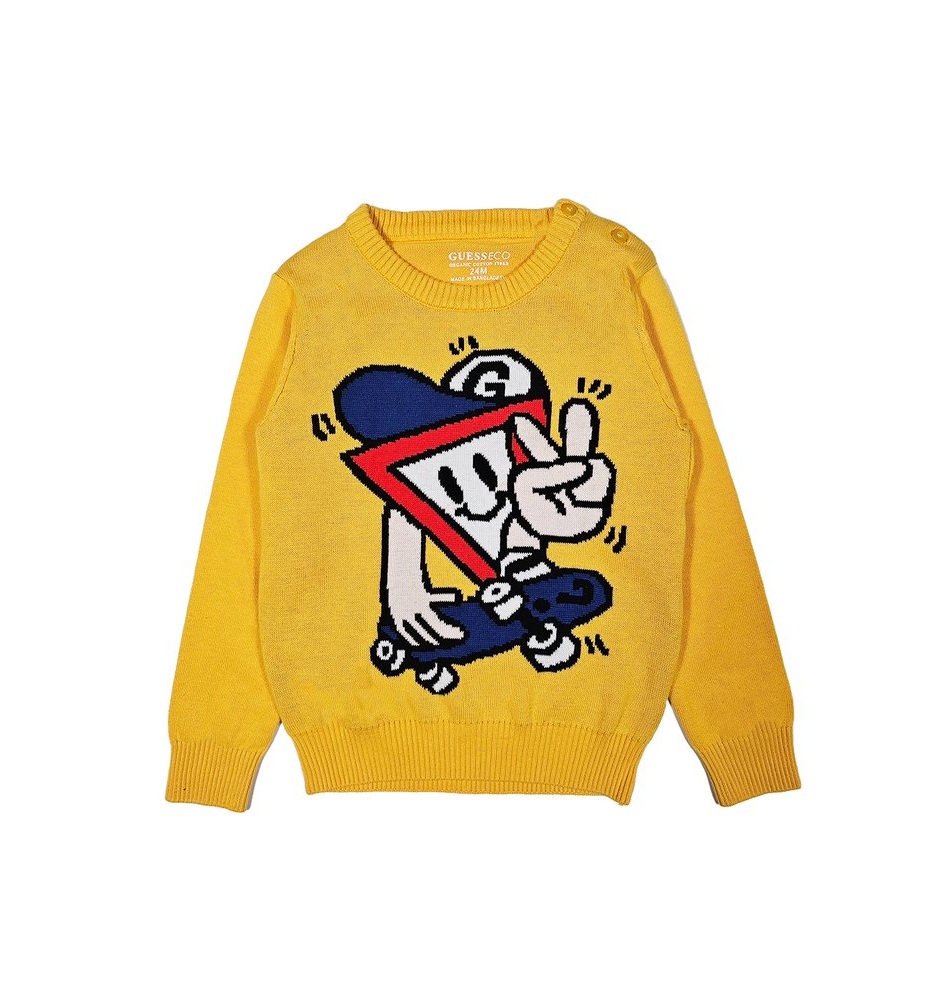 Maglione con collo rotondo, ricamo anteriore a contrasto, chiusura su spalla con bottoni, profili a coste