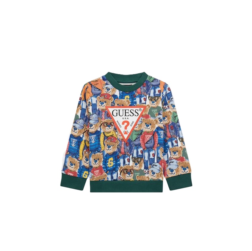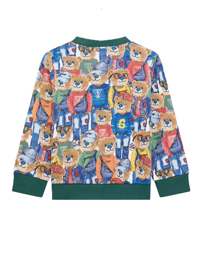 Felpa con collo rotondo, maniche lunghe con polsino elasticizzato a coste, stampa teddy all over e logo