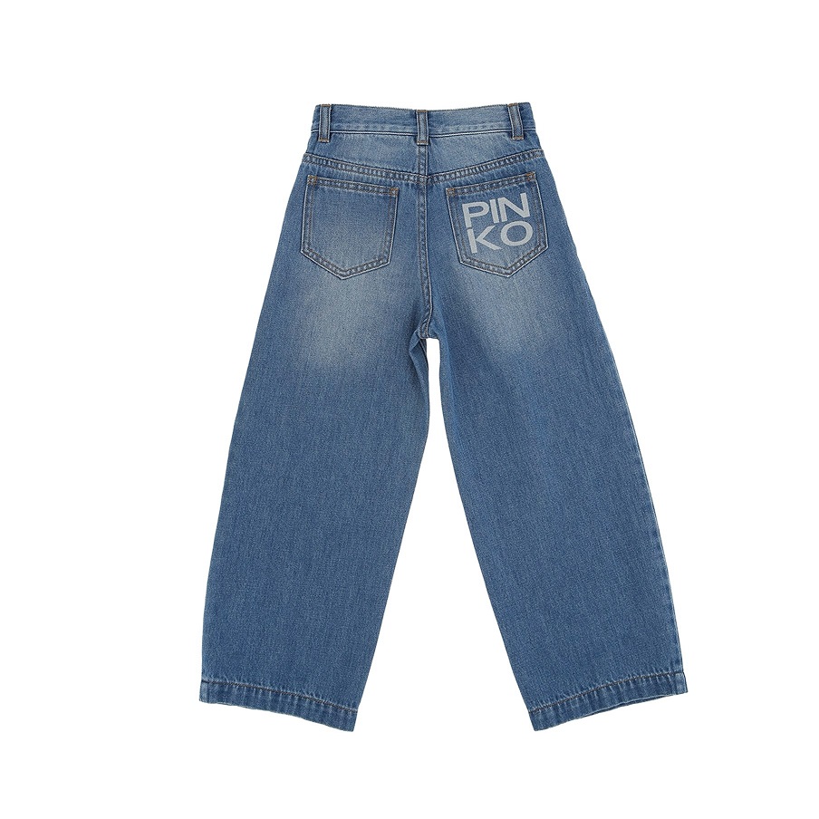 jeans palazzo con dettaglio logo a contrasto su tasca posteriore