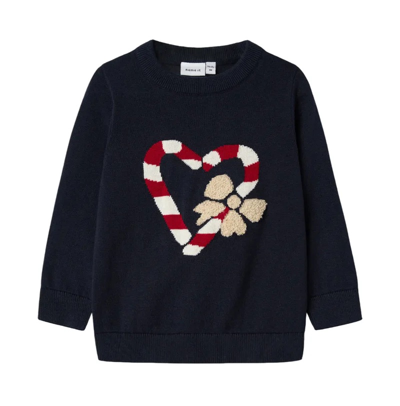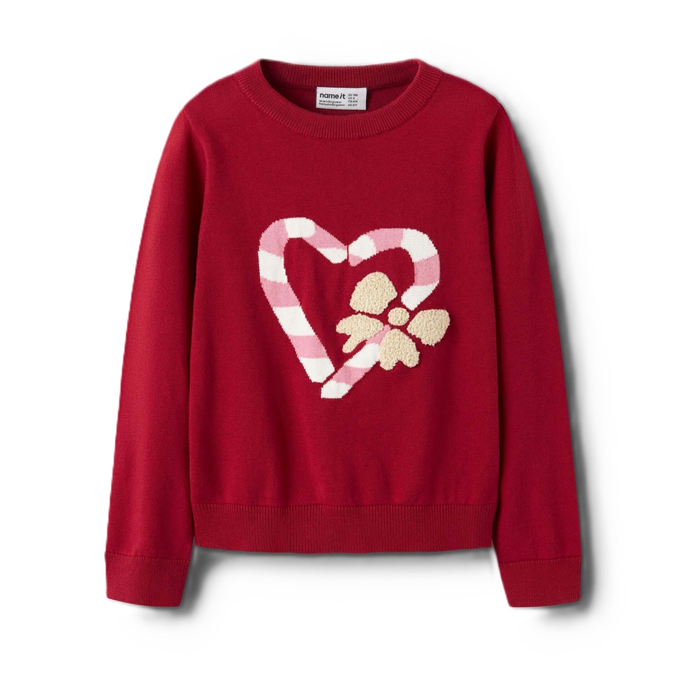 pullover basico con scollo rotondo, dettaglio ricamo natalizio a contrasto colore sul davanti