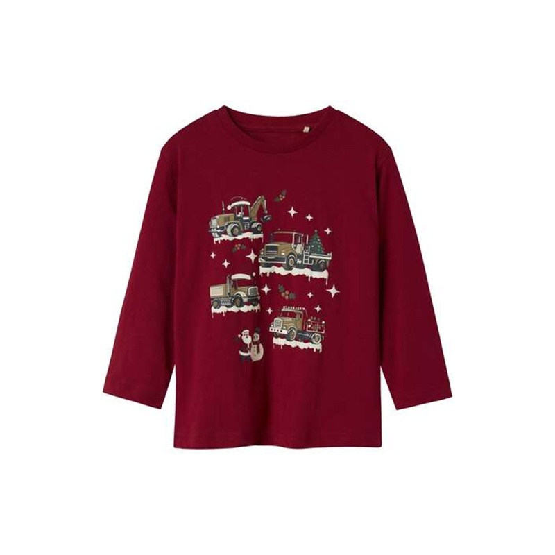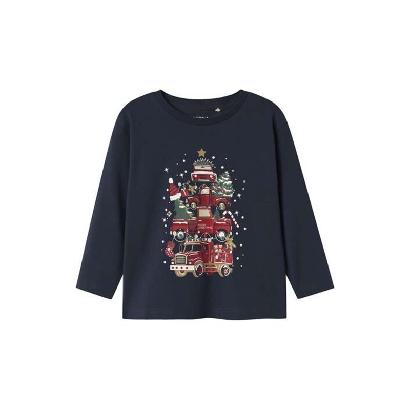 T-shirt manica lunga tinta unita con stampa natalizia anteriore a contrasto