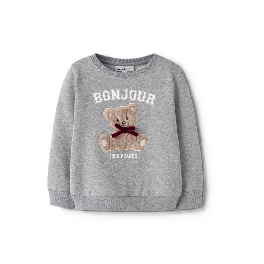 Felpa tinta unita con ricamo teddy e applicazione fiocco
