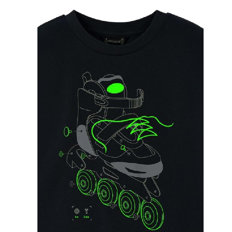 t-shirt a manica corta in tinta unita con stampa roller fluorescente a contrasto sul davanti