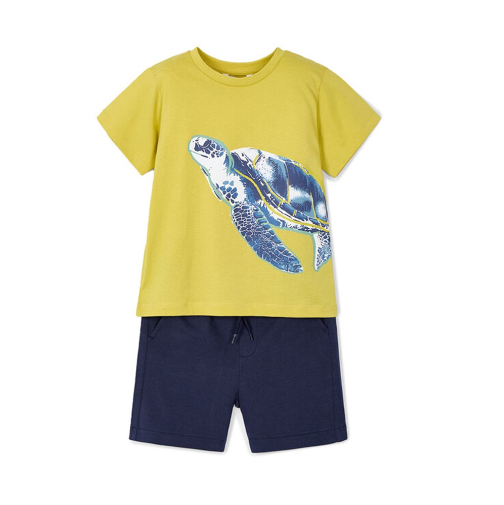 Completo composto da: t-shirt manica corta con stampa tartaruga e pantaloncini tinta unita