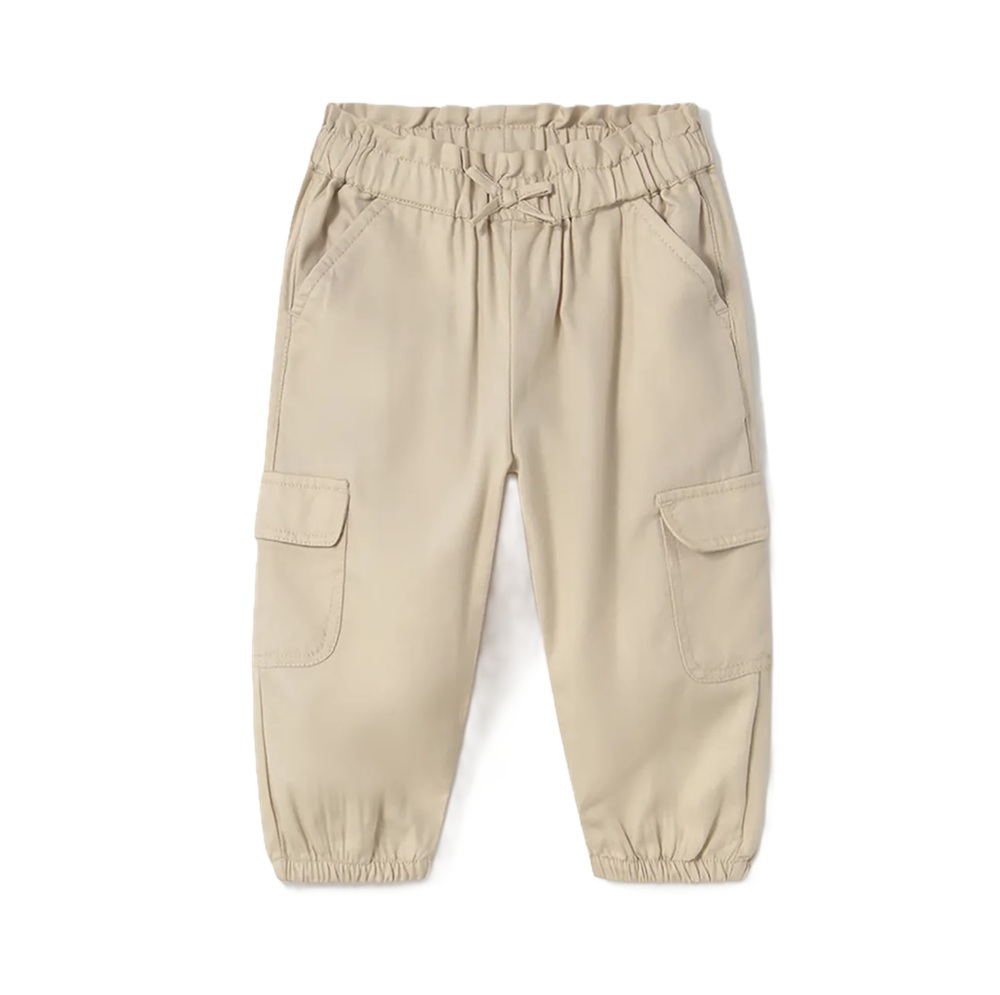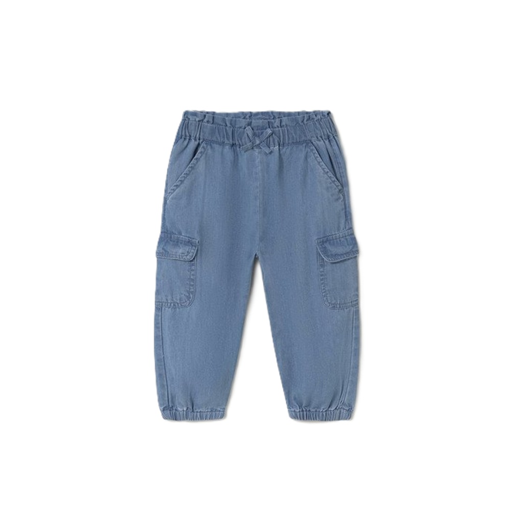Pantaloni tinta unita con vita elasticizzata e fiocco e fondo con elastico