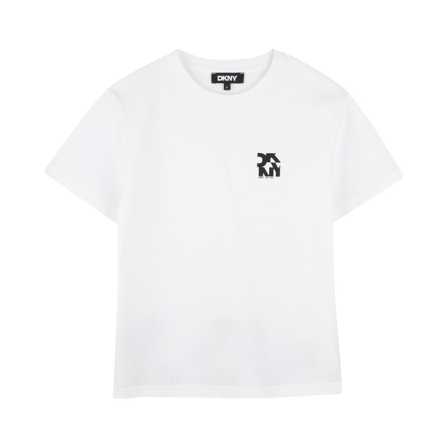 T-shirt manica corta tinta unita con logo anteriore e posteriore a contrasto