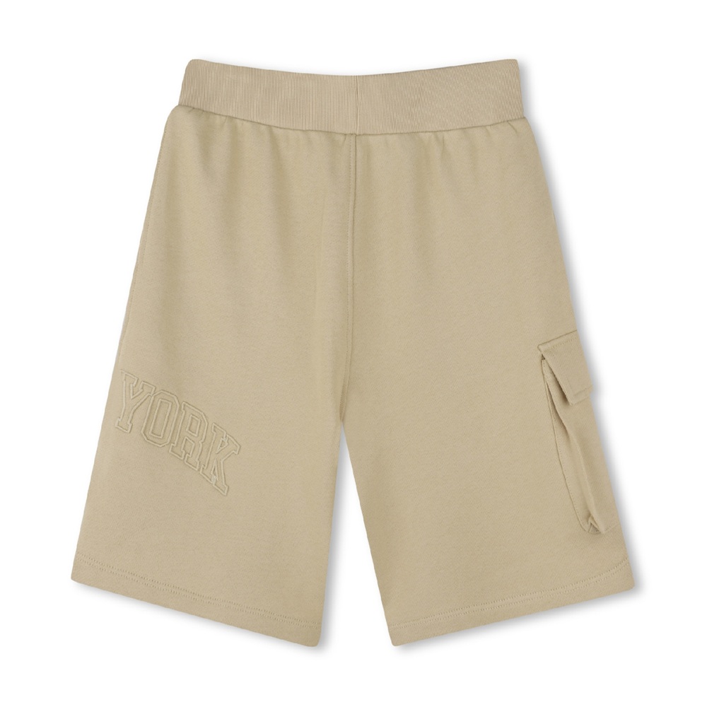 Bermuda in felpa tinta unita con stampa logo tono su tono, vita elasticizzata e tasche a filetto