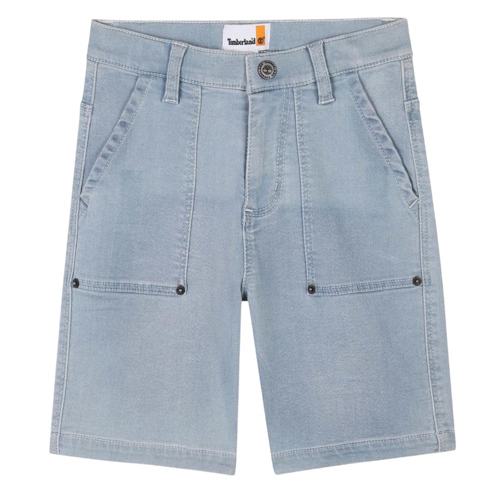 Bermuda in denim con tasche a filo e logo posteriore, vita regolabile da coulisse interna