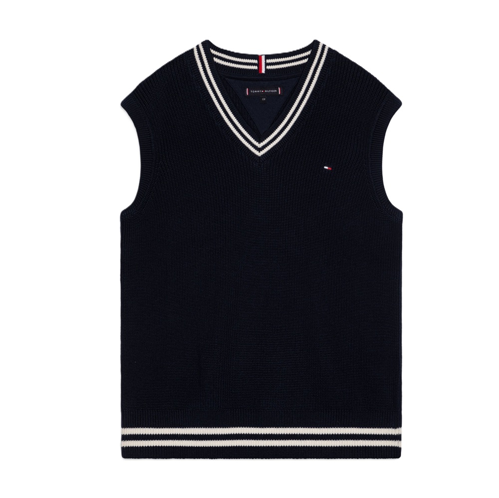 Gilet in maglia tinta unita con scollo a V e ricamo logo anteriore