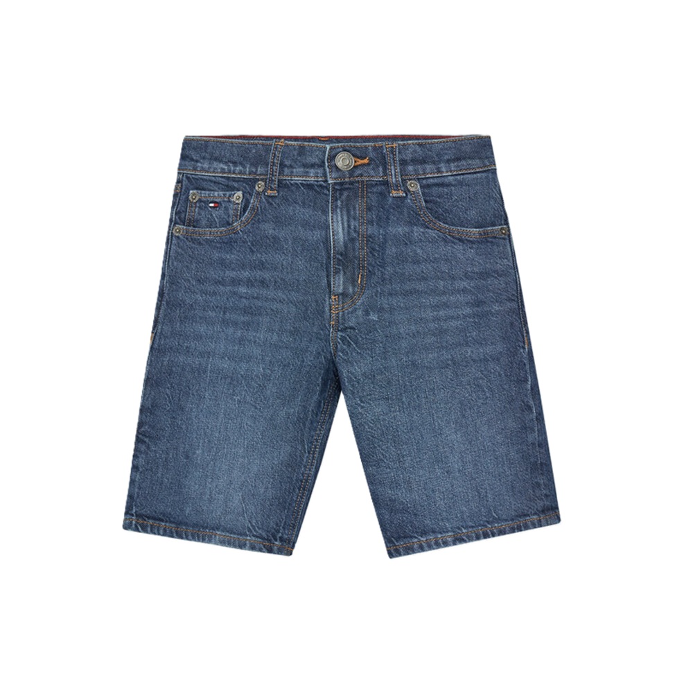 Bermuda in denim modello cinque tasche con vita regolabile da coulisse interna