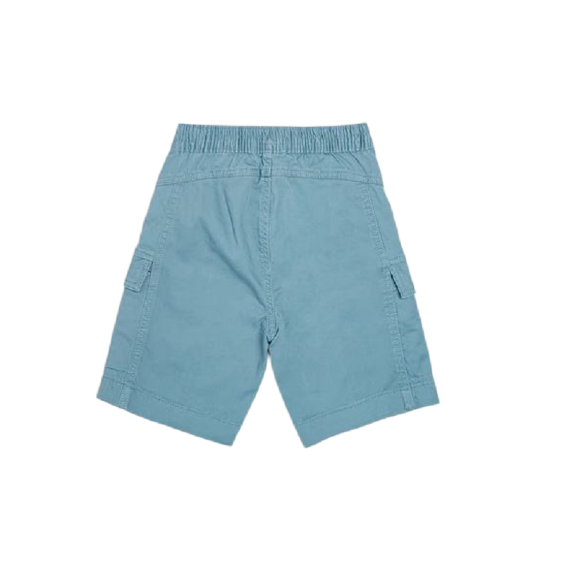 bermuda cargo in tinta unita con elastico in vita, dettaglio ricamo logo su fondo