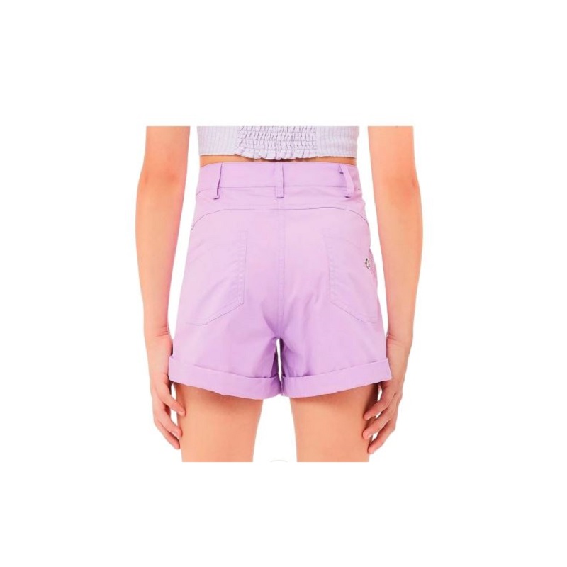 shorts in tinta unita con cinque tasche, dettaglio strass sul davanti e risvolto su fondo