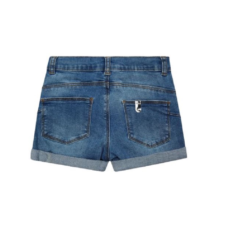 shorts in jeans con cinque tasche, coulisse interna in vita e risvolto su fondo
