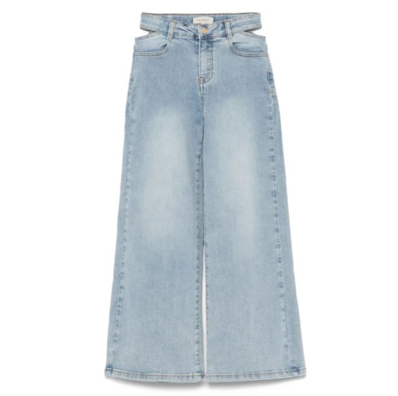 jeans palazzo cut out con spacchi in vita, modello palazzo e con tasche anteriori posteriori