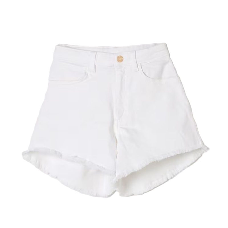 shorts denim in tinta unita con tasche e fondo sfrangiato