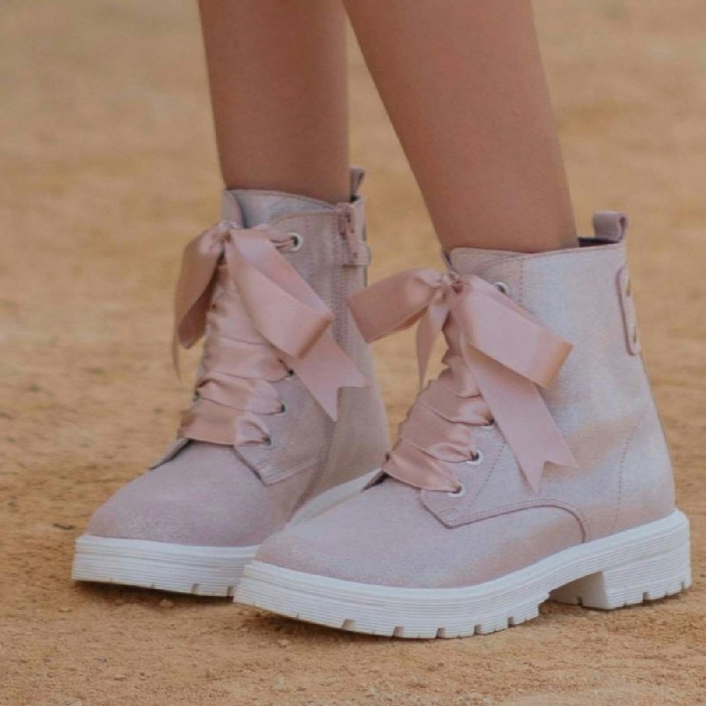 anfibio laminato con laccio i raso, chiusura laterale zip e suola in gomma carro armato