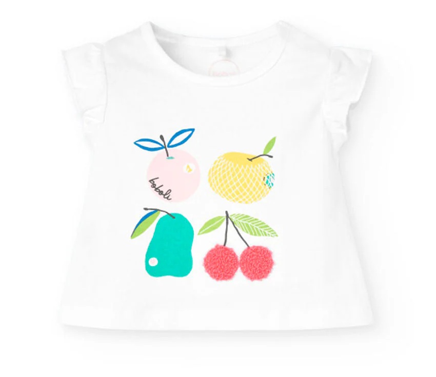 Completo 2 pezzi composto da: t-shirt manica corta con stampa frutti e coulotte a quadretti in coordinato