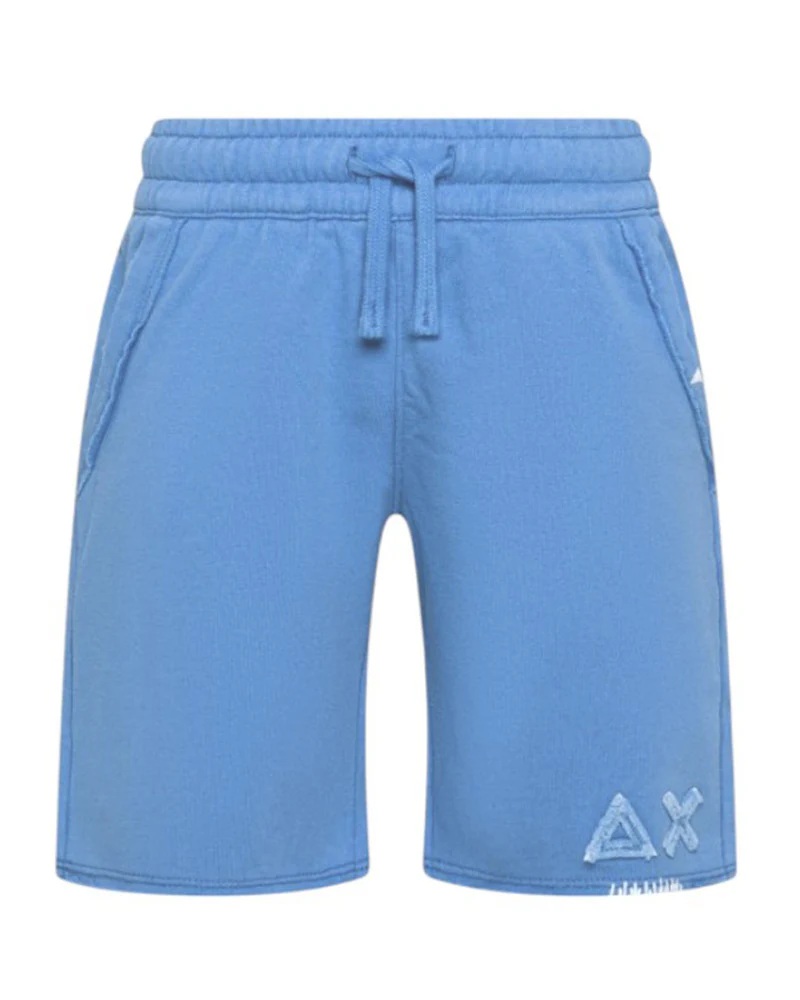 Bermuda in felpa tinta unita cuciture a vista e dettagli ricamati a contrasto, vita elasticizzata con coulisse, tasche laterali a filo e orlo a taglio vivo. È decorato con patch logo ricamata sul davanti.