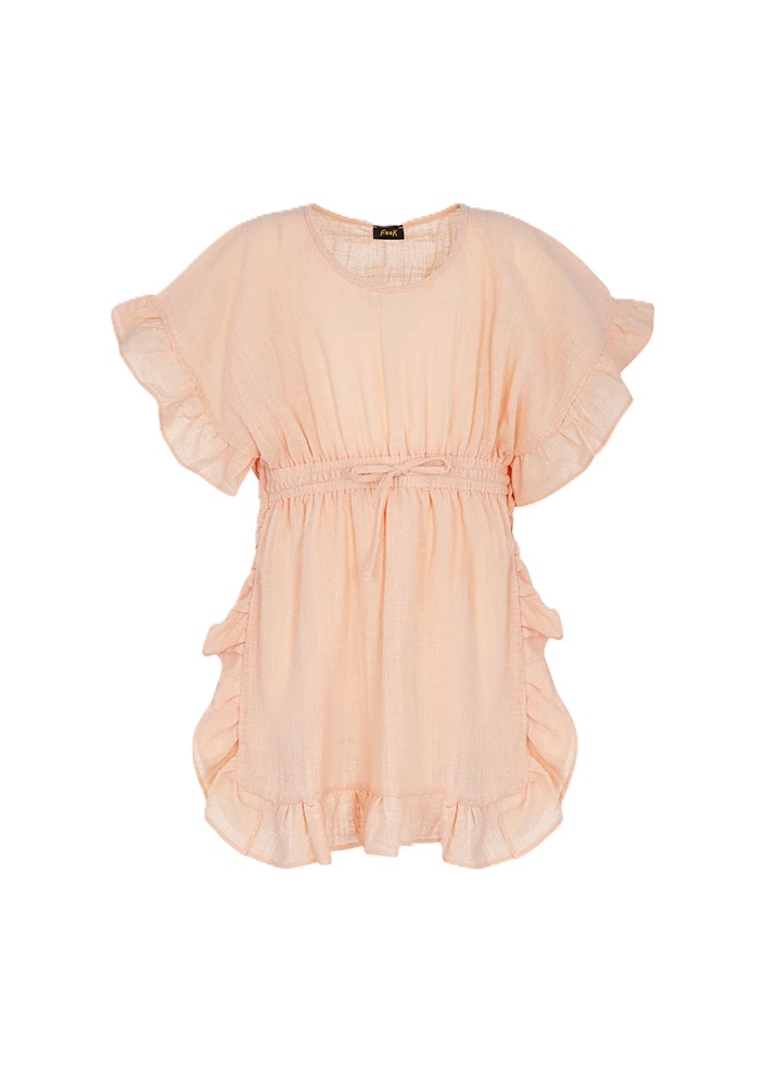 Caftano corto tinta unita con profili volant e coulisse in vita