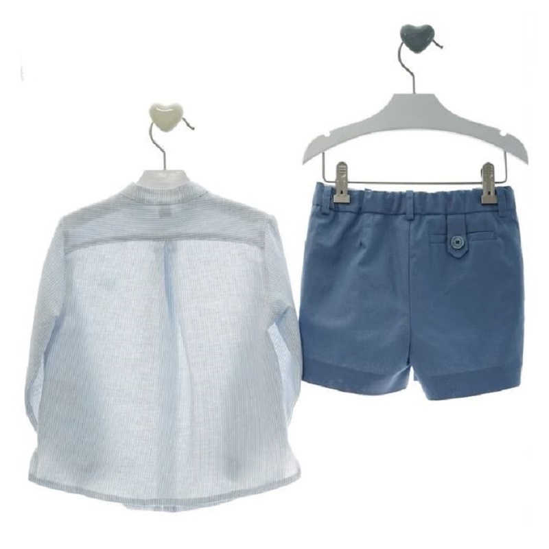 completo composto da camicia rigata modello pistagna con bermuda in tinta unita dal dettaglio pinces abbinata