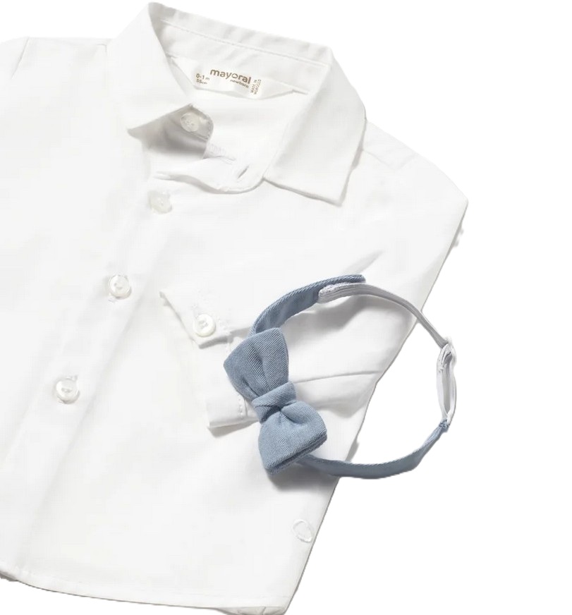 Camicia manica lunga tinta unita modello regular con papillon a contrasto