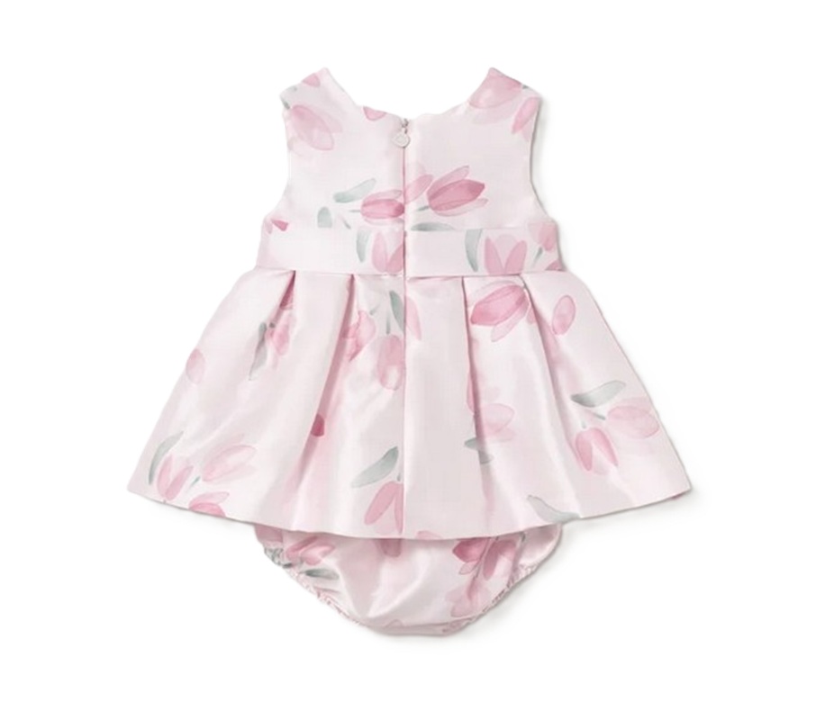 Abito in mikado smanicato con stampa fiori, coulotte in coordinato