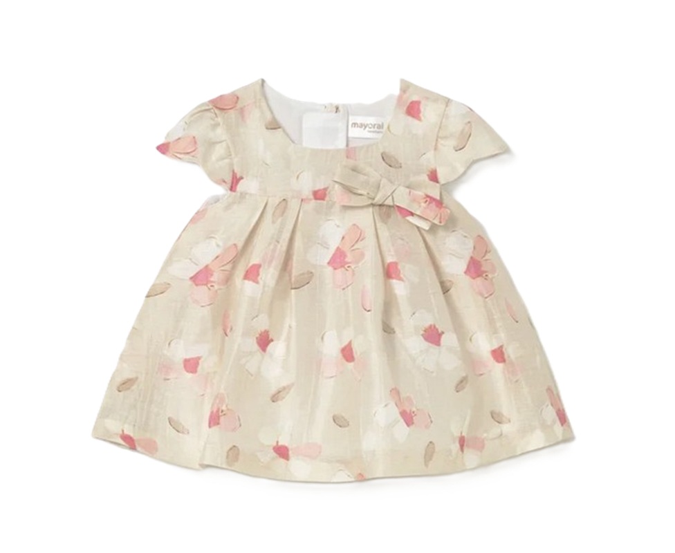 Vestito con stampa fiori all over multicolore e applicazione fiocco