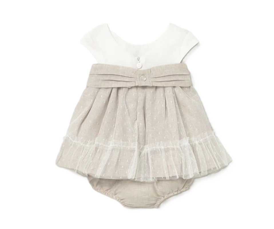 Vestito bicolore con tulle a pois e cintura, coulotte in coordinato