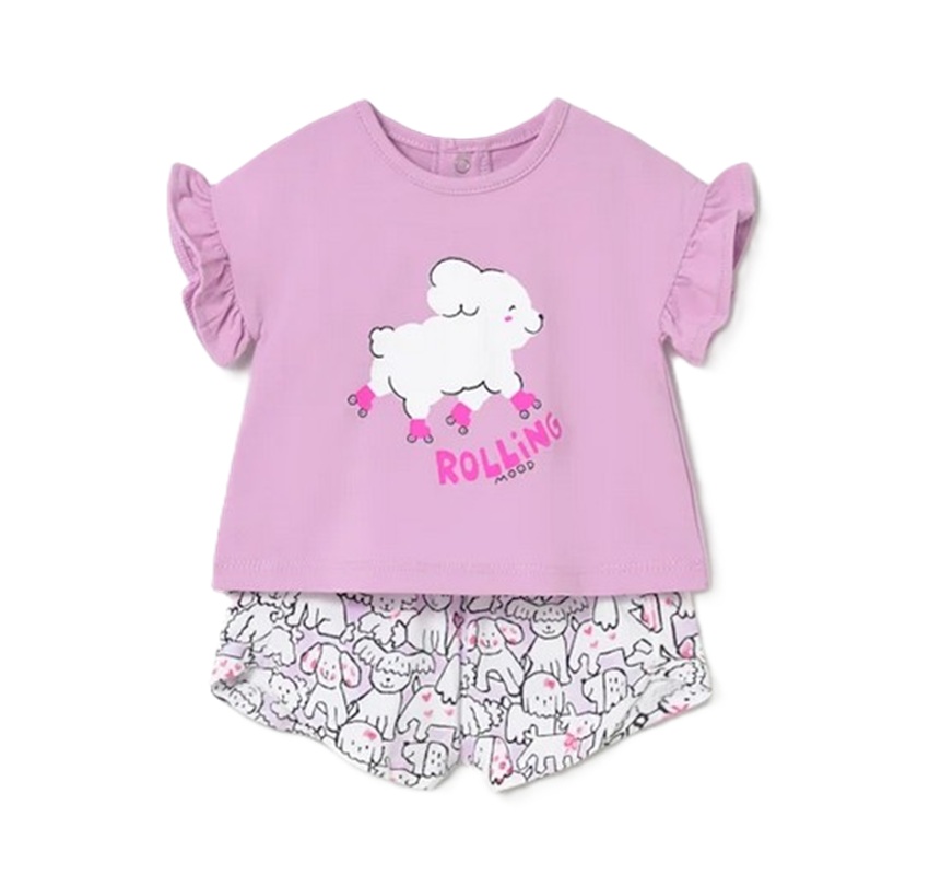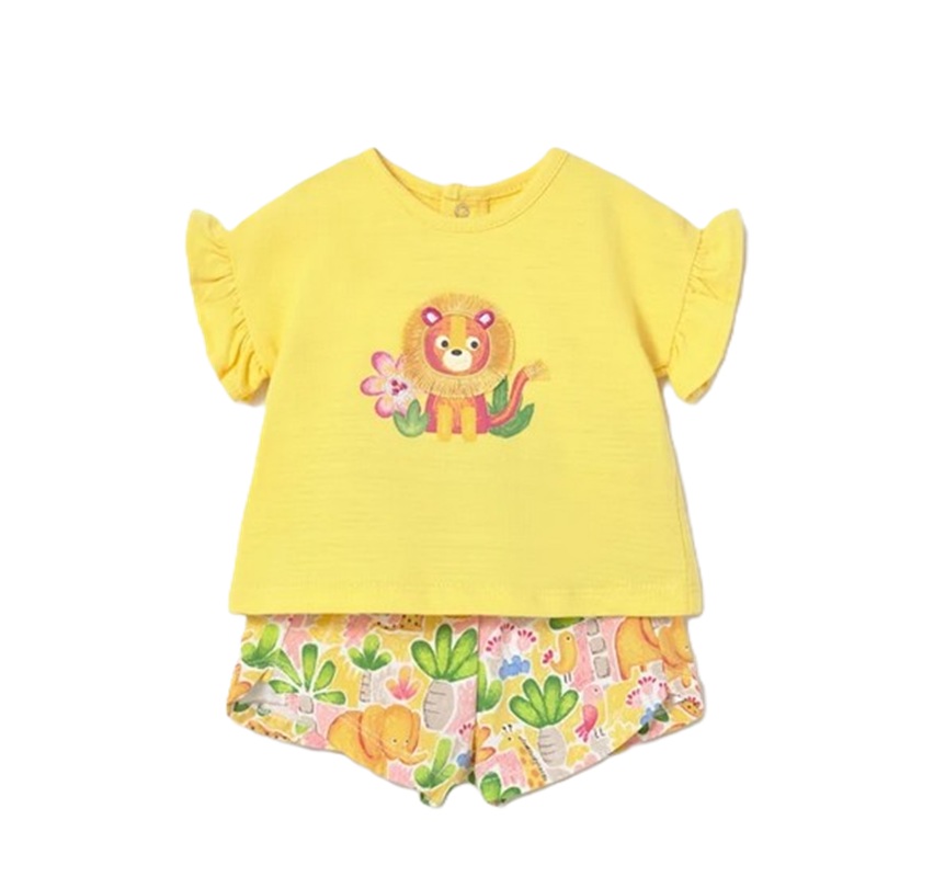 completo composto da t-shirt a manica corta con ricamo fiori/ leone o stampa e pantaloncino floreale/cani/animali in coordinato