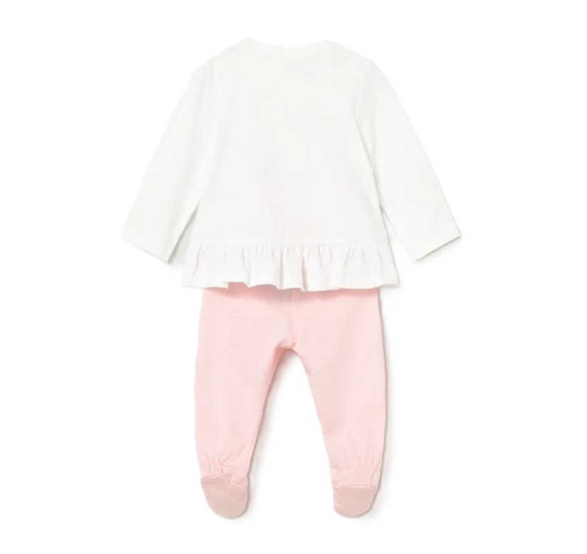 Completo 2 pezzi composto da: t-shirt manica lunga con ricamo e ghettina a contrasto