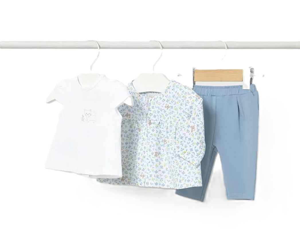 Completo 3 pezzi composto da: felpa con zip e stampa fiori all over, t-shirt manica corta con ricamo e leggings in coordinato