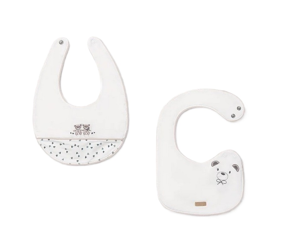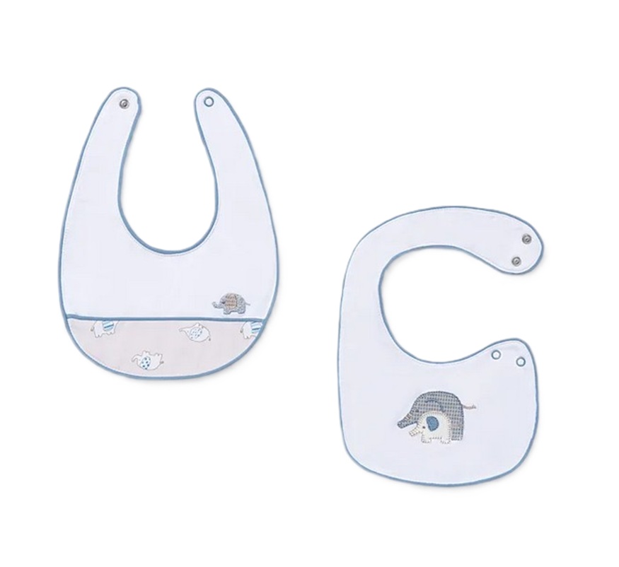 set due bavette con profili e ricamo elefante/cane/orso a contrasto