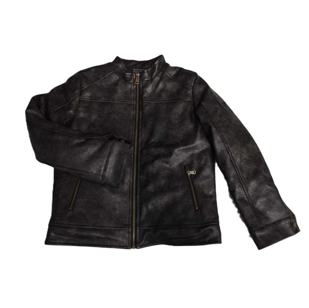 Giubbino in ecopelle tinta unita effetto slavato, chiusura e tasche con zip, ricamo logo su retro