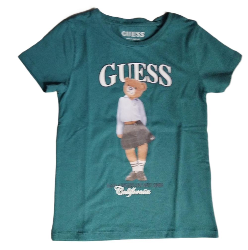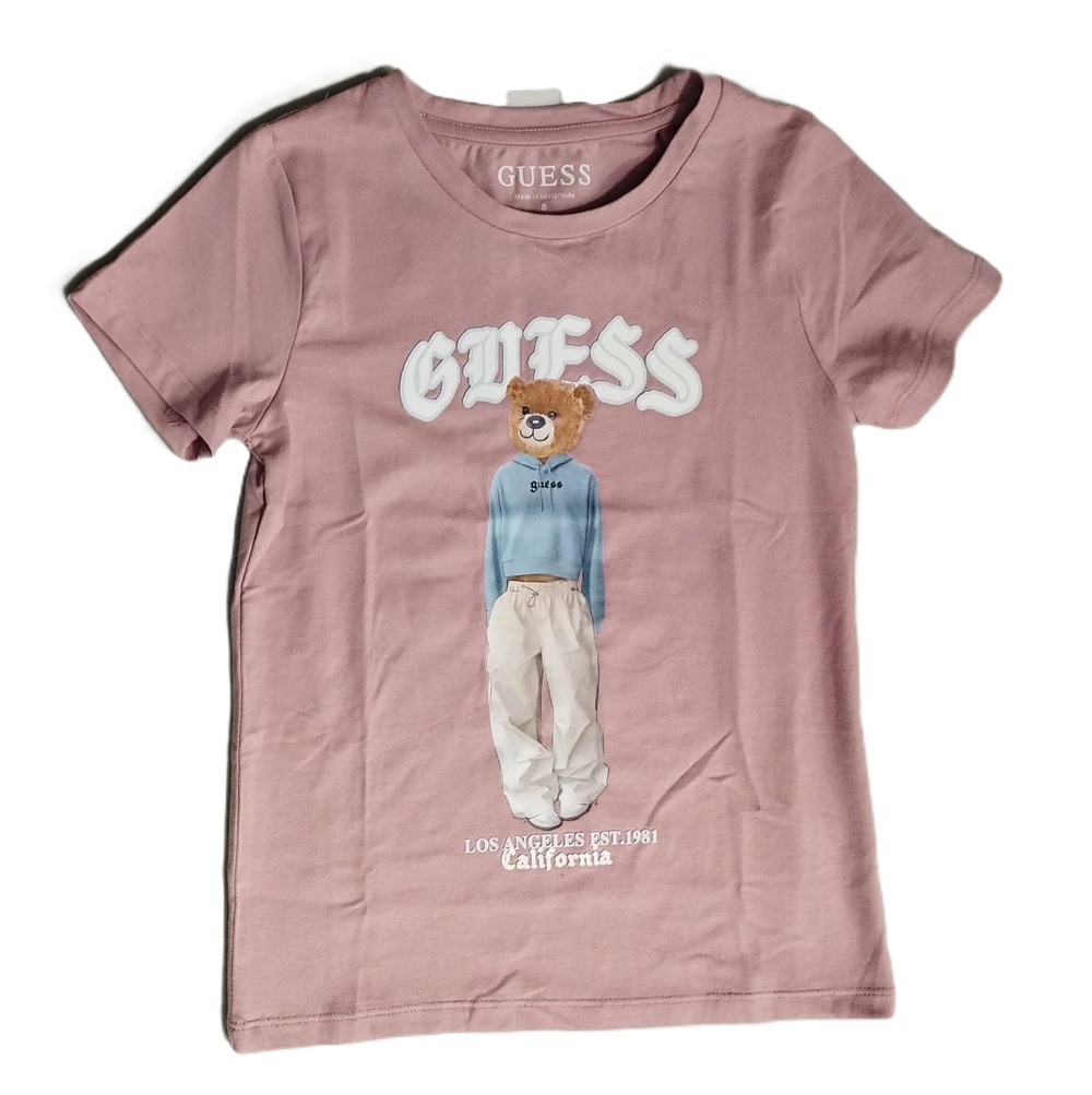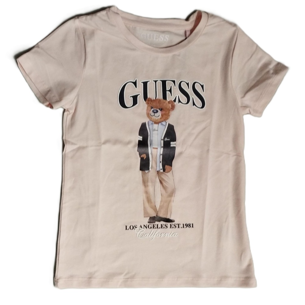 t-shirt a manica corta in tinta unita con stampa logo e teddy a contrasto sul davanti