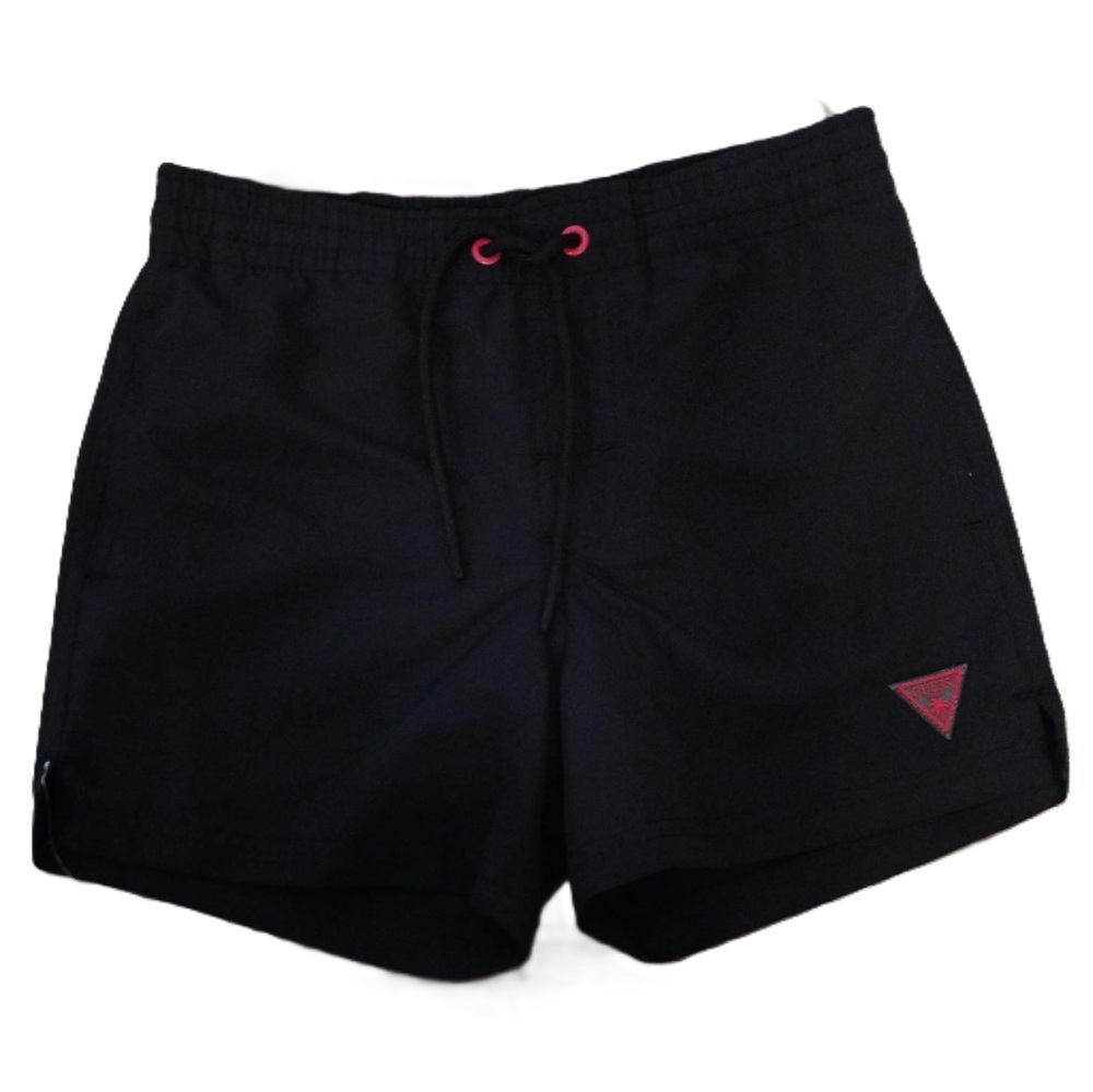 bermuda mare in tinta unita con elastico e coulisse in vita, logo in gomma su fondo