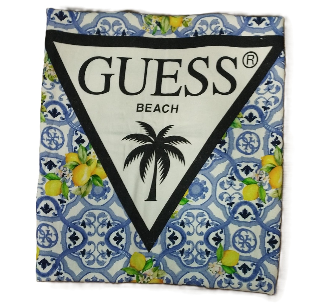 asciugamano mare a fantasia palme o maiolica con dettaglio logo centrale