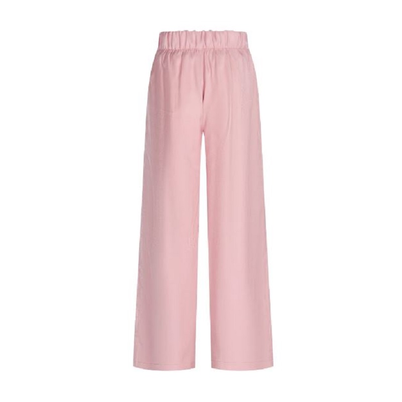 pantalone palazzo in tinta unita dal tessuto laminato con elastico in vita e tasche a filo