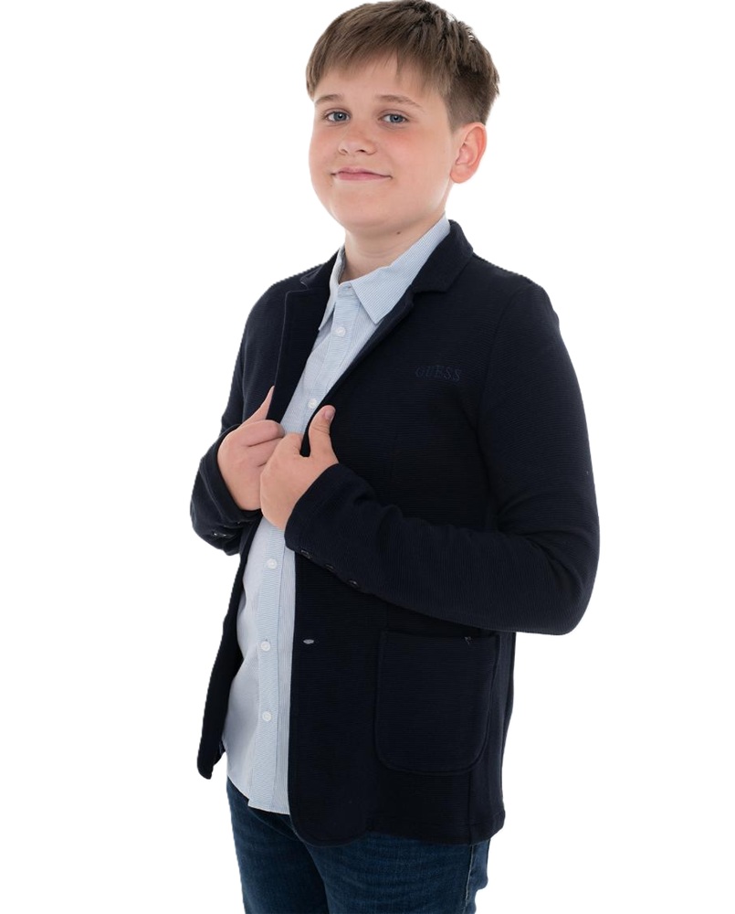 Giacca con lavorazione righe tono su tono e ricamo logo anteriore
