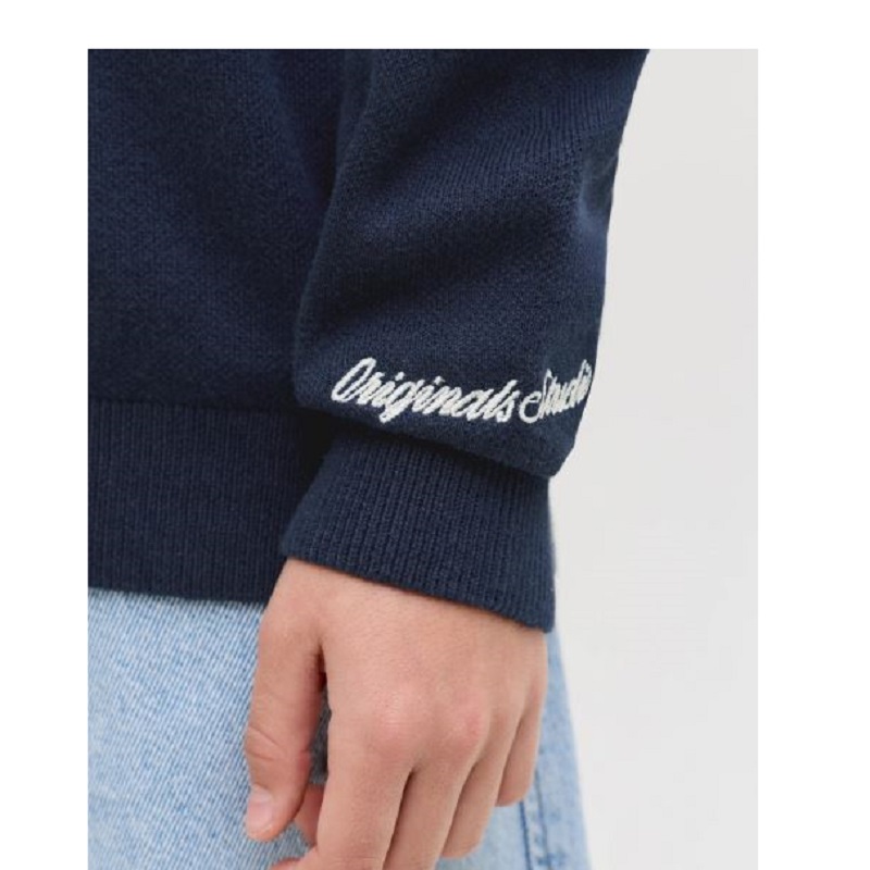 maglioncino in tinta unita con collo rotondo, ricamo logo su manica a contrasto