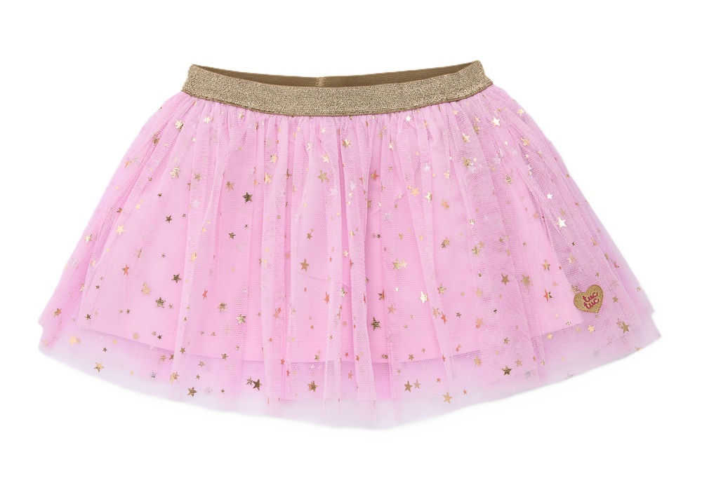 Gonna in tulle tinta unita con stampa stelle all over e vita elasticizzata lurex